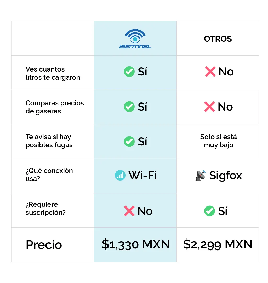 iSentinel es el medidor de gas LP más inteligente del mercado. Diseñado para tanques estacionarios, monitorea el nivel de gas desde tu celular, evitando robos y fugas. Se conecta por Wi-Fi y funciona con la app gratuita iSentinel Gas (disponible en iOS y Android).